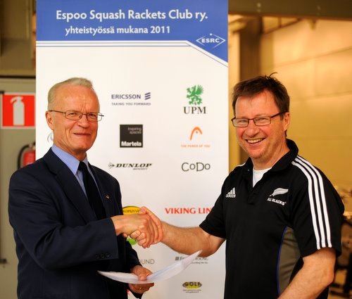 Lauri Tarasti, Suomen Squashliiton kunniapuheenjohtaja ojensi ESRC:lle sen omissa juniorimestaruuskilpailuissa 22.5.2011 nuorisosquashin kannustuspalkinnon näiden saatesanojen kera: